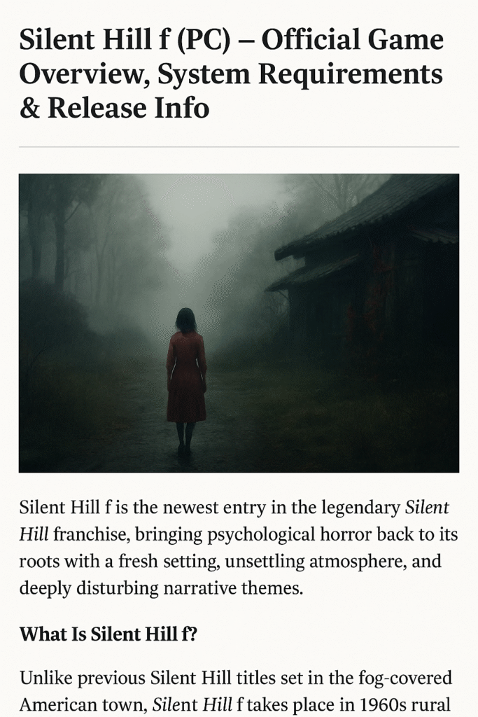 Silent Hill f (PC) – Official Game Overview, System Requirements, Downloads & Release Info